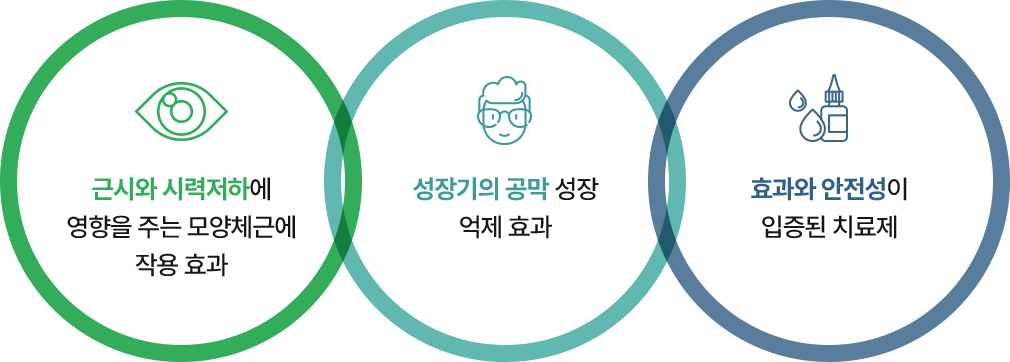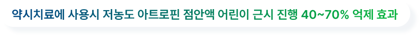 동공 크기를 크게 하는 효과가 있는 아트로핀을 저농도로 희석한 안약은 수정체와 모양체 조절을 마비시키는 작용을 통해 근시 진행을 늦추는데 도움을 줍니다.